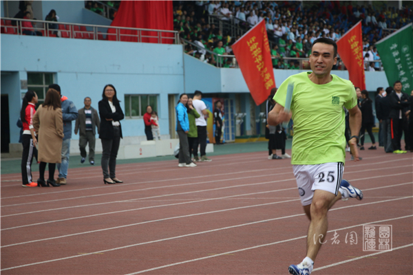老师们配合默契,一棒接着一棒,紧绷着神经向前飞奔。转眼间,跑第三棒的黄韬老师已与阿卜力克木·吾卜力老师完成了最后一棒的交接。此时场上气氛达到高潮,各院摇旗呐喊,加油声、喝彩声不绝于耳。阿卜力克木·吾卜力老师铆足了劲,在落后的情况下全力冲刺,力挽狂澜,最终夺得小组第三,总成绩排名第六。