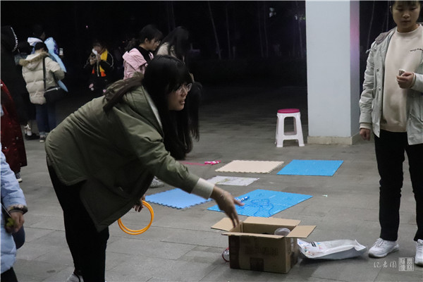 据悉,本次活动奖品丰厚,同学们参与小游戏即可获得参与奖,小游戏优胜者更能获得一份精美小礼物。活动现场被欢乐的笑声包围着,同学们的脸上洋溢着年轻的喜悦。铁人三项需要参与者很好的平衡感,叠图猜图考验人的眼力,套圈圈则不仅要求参与者有能力,还要求参与者的幸运指数足够高,恐怖箱则对玩家的胆量有着蛮高的要求。精巧的游戏设计给同学们带来了许多的欢乐。
