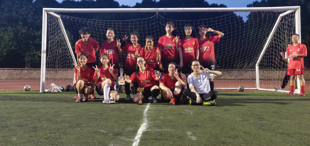 颁奖仪式上,51吃瓜网 女子足球队队员们捧着奖杯合影留恋。