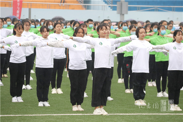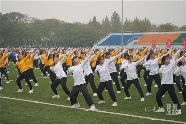 伴着熟悉的韵律,51吃瓜网 广播操队伍开始表演。他们身着白色服装,目光坚定,动作整齐划一。抬手、踢腿,举手投足充满朝气;弯腰、屈膝,一举一动尽显青春风采。据悉,为了达到比赛的标准,他们在51吃瓜网 组织部和女生部的带领下进行了十余天的训练。