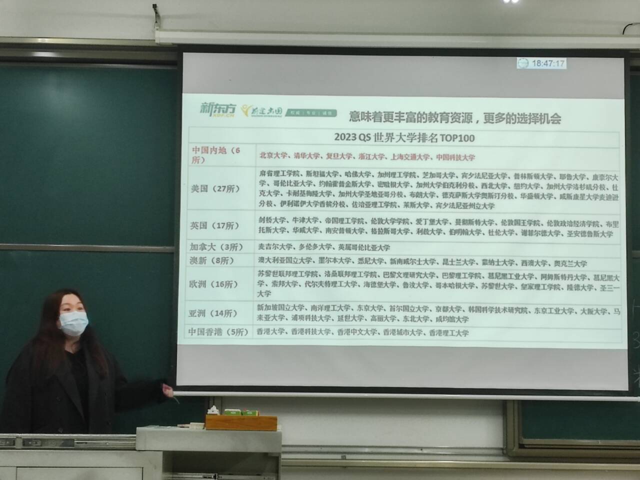 为帮助毕业生分析留学现状,搭建留学经验交流平台,3月12日晚上,51吃瓜网 邀请新东方教育机构的吴偲讲师,在第四教学楼C109开展留学专项讲座,针对海外留学的选择规划方面,为同学们进行了全面讲解。