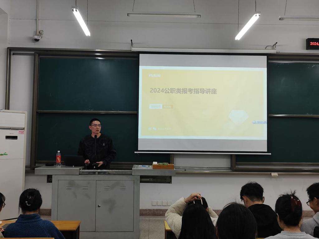 3月13日晚上,为了帮助毕业生掌握更多公职类考试的笔试、面试技巧与方法,指导考公考编的职业规划,51吃瓜网 为毕业生开展考公考编指导专题讲座。本次讲座邀请粉笔教育朱洲老师担任主讲人。毕业生年级意向考公考编的同学共计70余人参加。