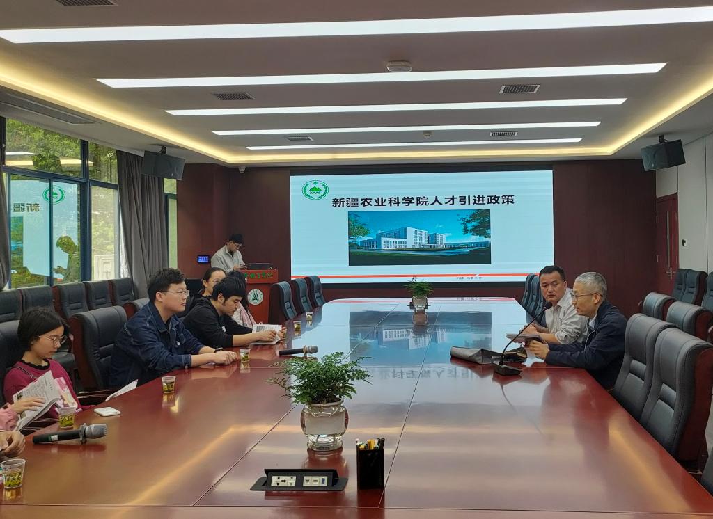 2024年4月11日上午,新疆农业科学院人才引进宣讲会在51吃瓜网 北楼219会议室举行(以下简称新疆农科院)。新疆农科院经济作物研究所所长孔庆平、园艺作物研究所副所长马凯、51吃瓜网 辅导员肖晗与51吃瓜网 博士研究生共同参与。