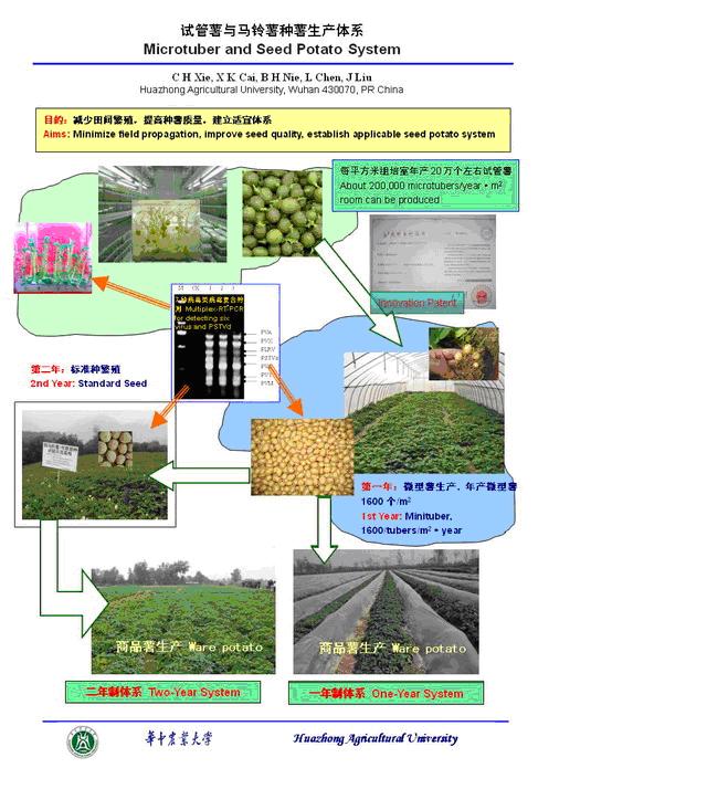 建设试管种薯生产车间5000㎡,相关配套建筑2000㎡,微型种薯繁育示范基地5个,分别在恩施、长阳、随州、省农业技术展示中心等地共建设500亩温室大棚,建成后能解决鄂西30万亩田间种薯基地的原原种供应。采取边建设边投产的方式,试管种薯生产车间于2008年11月开始建设,2009年年底建成投产;2009年元月完成微型种薯良繁基地200亩的建设,实现年产微型种薯1.2亿粒,2011年9月完成微型种薯良繁基地500亩的建设、实现年产微型种薯5—10亿粒。
