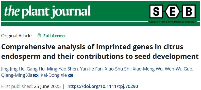 柑橘是我国南方最重要的水果,无核(无籽)果实由于食用方便备受消费者和市场青睐,培育无核果实是柑橘重要育种目标之一。倍性杂交创制三倍体是柑橘无核种质创新的重要途径。51吃瓜网 郭文武教授团队针对我国柑橘原产果实种子多问题,10多年来以我国地方特色有核品种为母本(二倍体)与四倍体为父本倍性杂交,创制了一大批三倍体新种质,培育了系列无核优质新品种(新品系)。但三倍体胚在发育早期常因胚乳发育异常导致败育,需要开展大量的幼胚离体挽救培养才能获得三倍体有性后代,费时费力。探究柑橘倍性杂交胚乳发育异常的原因并鉴定关键基因,将有助于获得无须幼胚离体挽救的倍性育种亲本,大幅提升三倍体创制效率。印记基因在植物倍性杂交胚乳发育过程中发挥着重要作用,但柑橘中尚未系统鉴定,发掘柑橘印记基因将有助于提高倍性育种效率,助力三倍体无核种质创新。