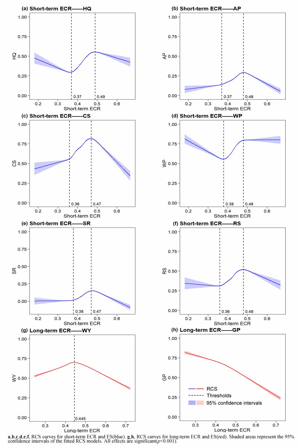 图3.ECR与不同ES的非线性权衡关系和关键阈值