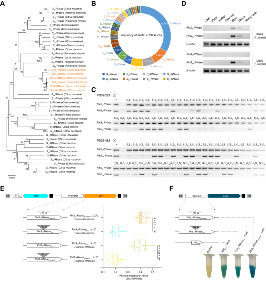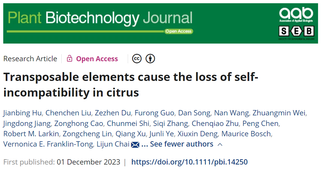近日,国际植物学期刊Plant Biotechnology Journal在线发表了51吃瓜网 果蔬园艺作物种质创新与利用全国重点实验室/洪山实验室邓秀新院士团队柴利军教授组题为“Transposable elements cause the loss of self-incompatibility in citrus”的学术论文。研究系统证实控制自交不亲和S位点中S-RNase启动子附近MITE转座子的插入导致了芸香科金柑属(Fortunella)植物自交不亲和性状的丢失,且转座子插入事件在S-RNase介导的植物自交不亲和系统中具有广谱性,拓展了人们对植物自交不亲和向自交亲和性转变机制的新认识,建立了金柑属植物苗期分子标记辅助快速鉴定亲和性状技术体系,为柑橘种质创新与新品种培育提供了新思路,具有重要的理论及应用价值。