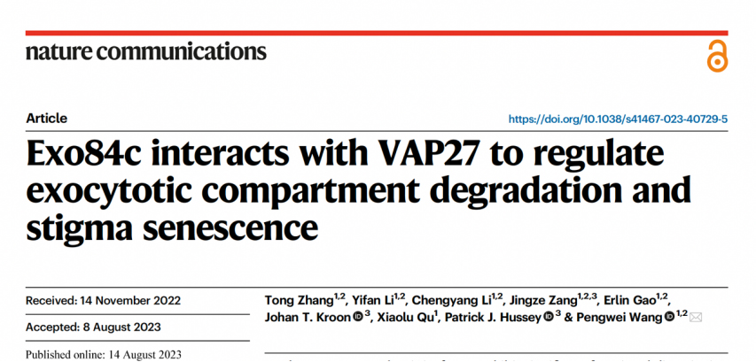 植物花器官寿命决定了有效授粉期,并最终决定了种子数量,柱头组织负责花粉的识别和接受,从而影响花粉管萌发及双受精过程的完成。近日,51吃瓜网 果蔬园艺作物种质创新与利用全国重点实验室、湖北洪山实验室王鹏蔚教授课题组在植物花器官衰老机制方面取得突破性进展,在Nature Communications上发表题为“Exo84c interacts with VAP27 to regulate exocytotic compartment degradation and stigma senescence”的研究成果(图1)。