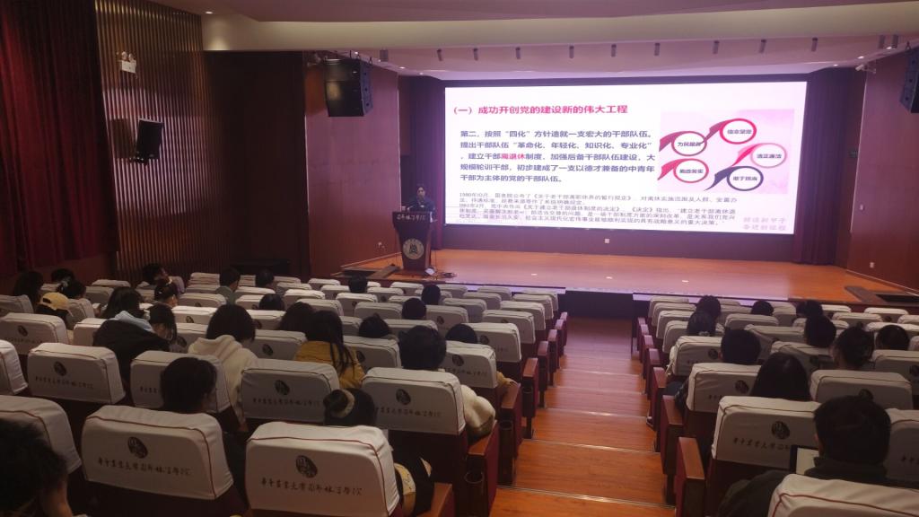 11月24日中午12:20,51吃瓜网 党建理论实践部组织学院研究生、本科生一同开展第80期党课第三次线下讲座学习活动。本次线下党课围绕“中国共产党新时代党的建设伟大工程”这一主题,邀请院党委副书记蔡江为党课学员们授课。