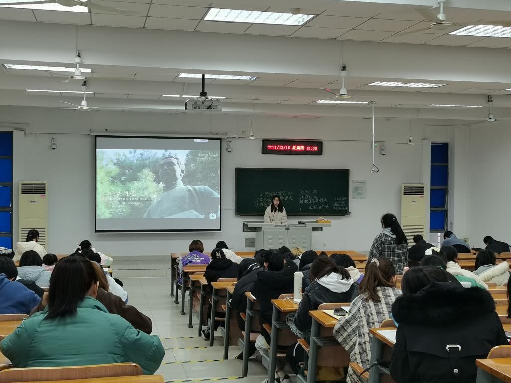 活动开始,主持人给参加活动的同学们播放了党史纪录片《敢教日月换新天》的第六集——《建国大业》。该片讲述了在党的领导下,中国人民是如何消灭外敌,建设社会主义道路。
