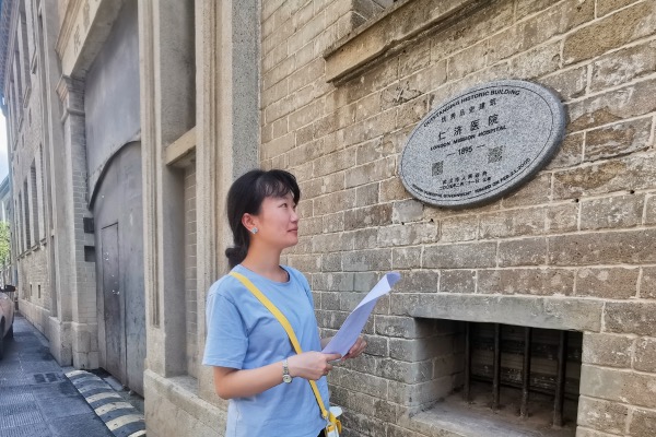实践团通过随机采访路人,调查各年龄段群众对该景点的了解程度。通过入户探访,团队成员走街串巷,随机入户采访附近居民,从人们口中了解仁济医院的历史,包括那些未被记载的细枝末节或传说。例如,仁济医院是英国传教士杨格非一力促成,当时武昌还有许多包括仁济、同仁等西医医院。而后,实践团将这些小故事整编成宣传单发放,并向游客进行讲解。