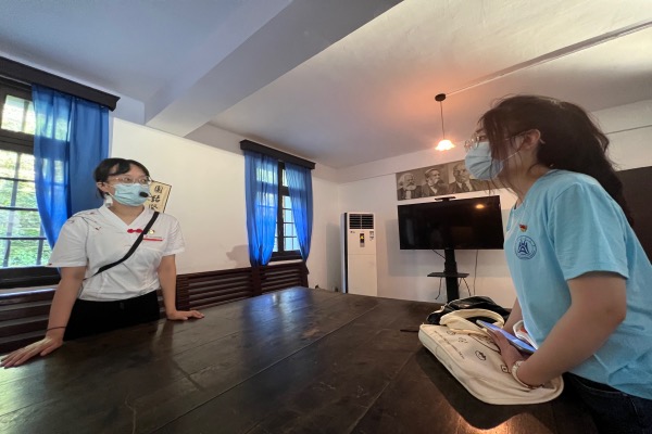 讲解结束后,团队成员董晓玲针对文物保护、宣传和中小学红色教育等方面对讲解员进行采访。通过讲解员的回答团队成员得知:工作人员会定期整理馆内收藏文物名目,并修复不完整的文物;场馆会定期关闭古建并对其内部进行修缮、保护、加固。在建党建军节时客流量较大,场馆以党性活动和红色教育活动为主。纪念馆通过设置展点、研学、微党课等形式进行宣传,同时增设剧本杀、画画等富含趣味性的形式帮助小朋友了解红岩故事、学习红岩精神。周总理曾说:“共产党人要如六月风荷,出淤泥而不染,同流而不合污。”同流而不合污,便是红岩精神的精髓所在。国统区的共产党人面临国民党的威逼利诱,却依然能够坚持理想信念,这是红岩精神中最值得当代青年学习的地方。