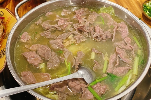 8月13日,实践团成员选择饕林餐厅作为川菜的调研地。其中跷脚牛肉让人印象深刻,牛肉肉质滑嫩鲜美。据传是有位精通歧黄之术的老中医在河边悬锅烹药,救济过往的行人。他把大户人家弃之不用的牛杂捡回洗净后,与有中草药的汤一起炖煮。结果发现熬出来的汤香、能治病,因此也吸引了不少食客。当时人们站着习惯一只脚搭在桌底下的横梁上。久而久之食客们便形象的起了一个“跷脚”牛肉的别称,且流传至今。如今人们吃到的跷脚牛肉是经过近百年的改良与传承,滋味更丰富,食材更鲜美、营养,成员采访了邻桌食客,对方表示:“吃过之后还是能体会到几十年前人们不惜站着“跷脚”,也要吃上这一口的心情。”