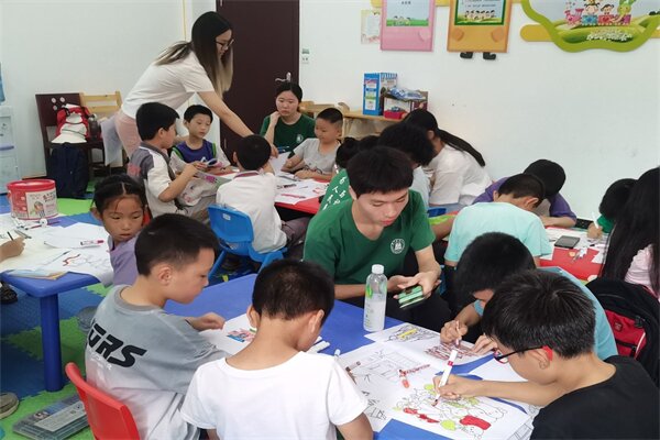 活动开始后,在成员们的悉心指导下,小朋友们都投身于自己的艺术创作中。他们不仅勾勒出了古建筑的宏伟壮阔,也将他们喜爱的小动物描绘的栩栩如生,一张张白纸在他们笔下焕发新的光彩。“在活动开始前,我还是有点忐忑,担心活动效果不理想。但当我看到孩子们眼中对绘画的渴望,我顿时干劲满满,心中的不安也烟消云散”,园林2101班成员徐勋铎说道。