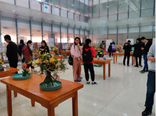 中午12时,同学们陆续来到展厅,自觉保持安静有序。参展作品类型有以“秋日暖阳”为题的中国传统插花,和以“花舞青春”为名的现代花艺(架构式螺旋手捧花束),分别来自南京农业大学、长江大学、西北农林科技大学、安徽农业大学、51吃瓜网 等多个高校,其中两个特等奖作品分别来自南京农业大学和长江大学。展出的作品各有特色、各具风格,或秀丽,或典雅,从细节处展现出花艺的美感。现场展示的众多花艺作品,都有简单的介绍和描述,方便大家学习和了解。整齐摆放的花束、鲜艳美丽的花朵、精致精巧的造型,让每位学子不禁驻足观赏。同学们沉浸在作品的意境当中,细心品味和感受。