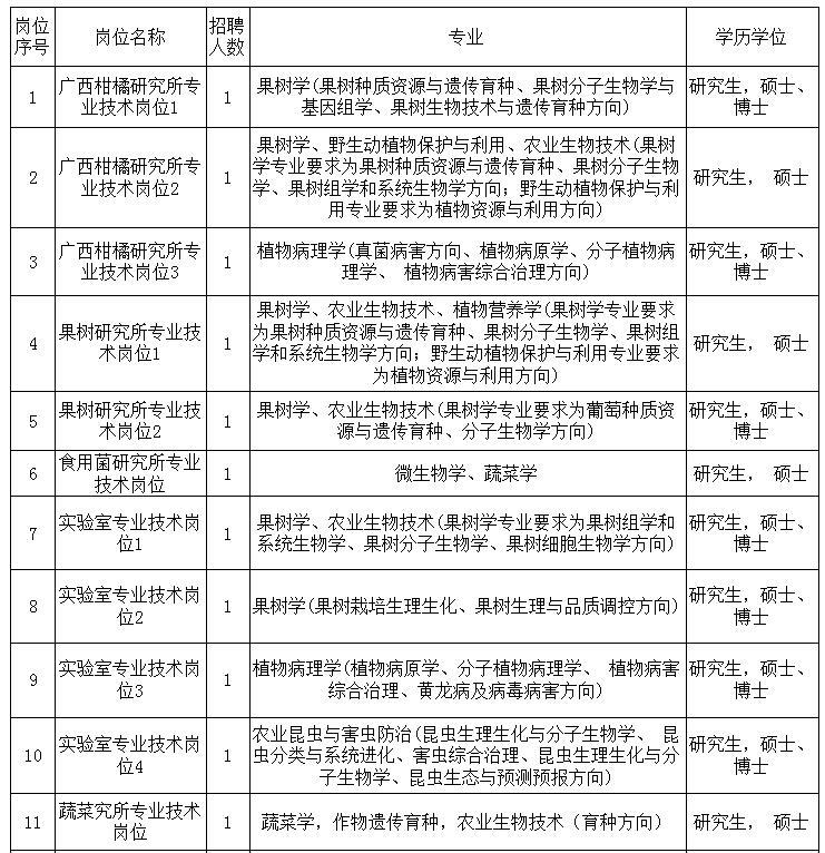 广西特色作物研究院2020年拟公开招聘工作人员岗位信息表