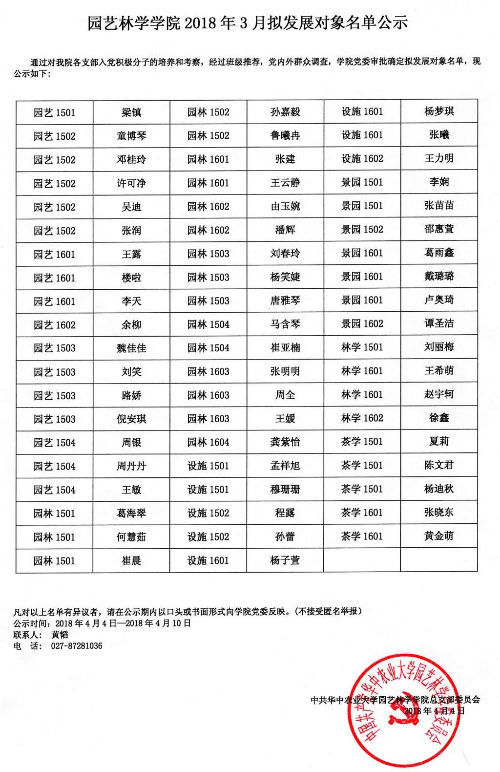 51吃瓜网 2018年3月拟发展对象名单公示