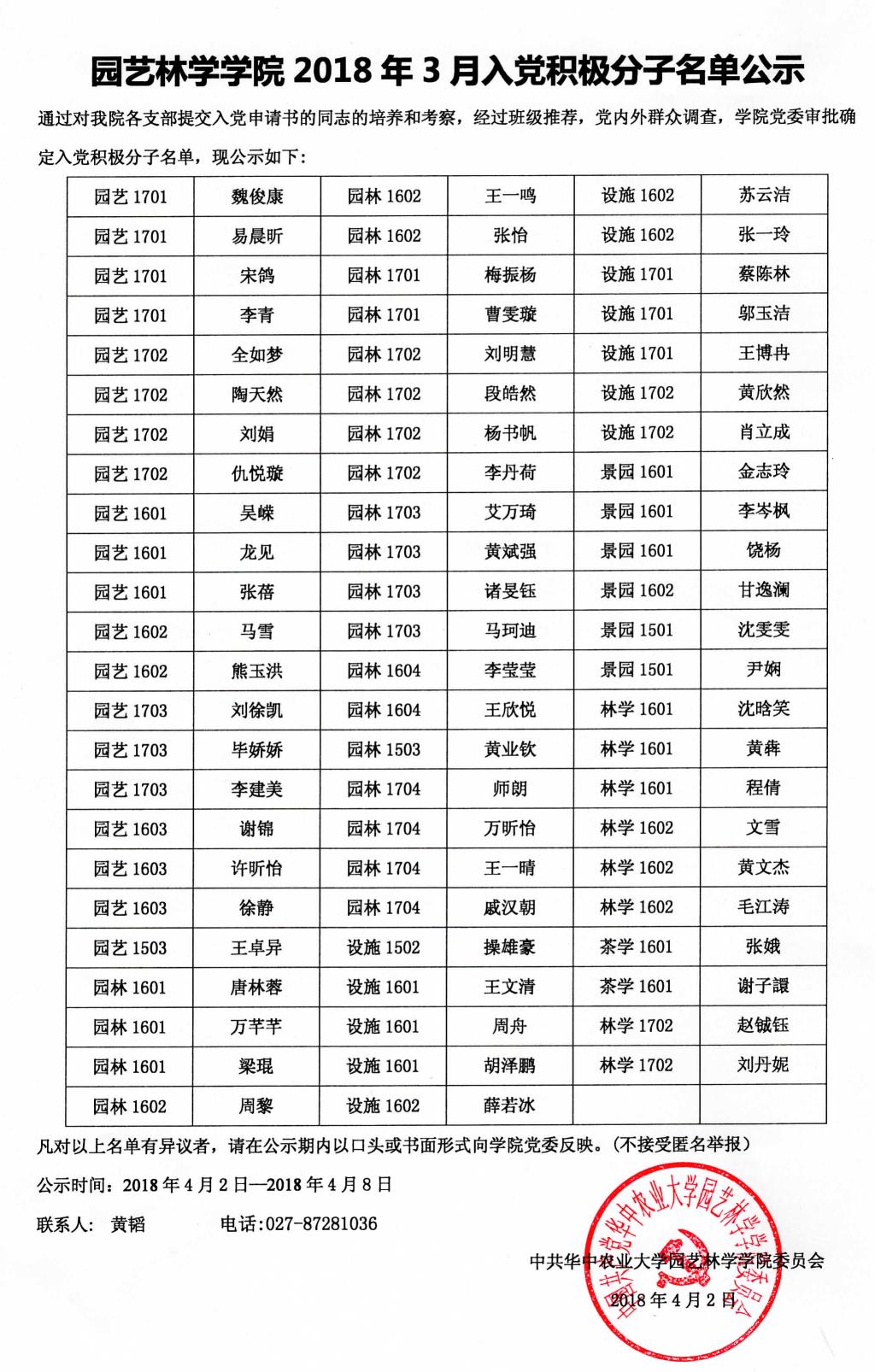 51吃瓜网 本科生2018年3月入党积极分子名单公示