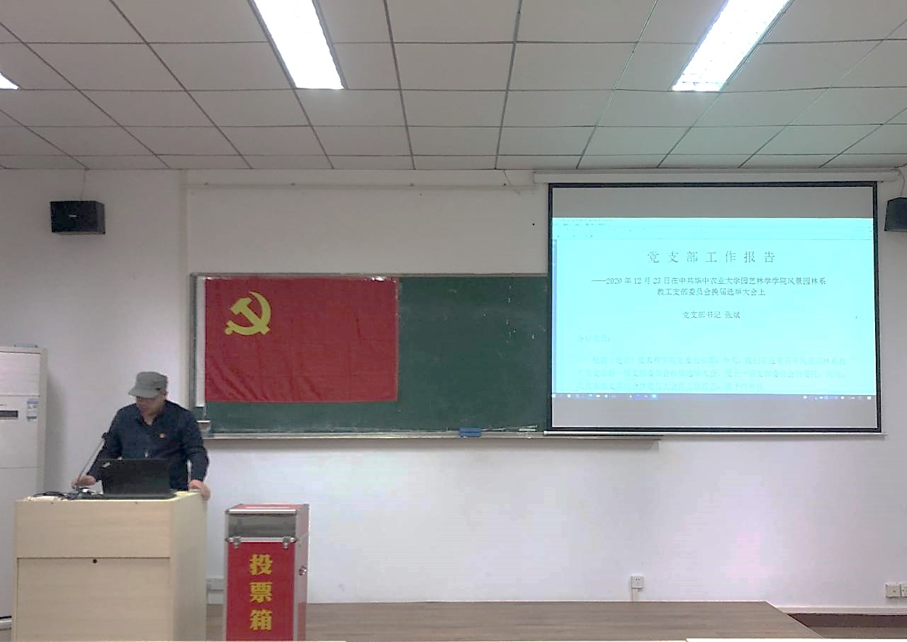 大会按照《中国共产党章程》《中国共产党基层党组织选举工作暂行条例》《中共教育部党组关于加强新形势下高校教师党支部建设的意见》规定,认真贯彻民主集中制原则,充分发扬党内民主,尊重和保障党员的民主权利,在广泛征求党员和群众意见的基础上,拟定了支委会委员候选人名单。会上,全体党员审议通过并依照《风景园林系教工党支部委员选举办法》,差额选举产生了新一届支委会委员,张斌、王玏、叶莺、丁静蕾、刘文平共五位同志当选。