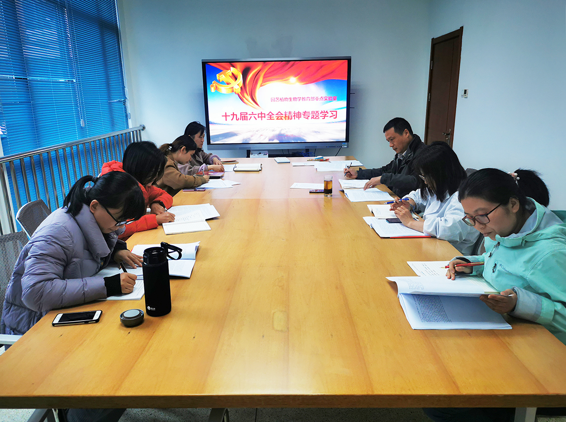 11月22日下午,园艺植物生物学教育部重点实验室党支部在园林南楼218开展主题党日活动,专题学习十九届六中全会精神。支部党员、预备党员参加此次活动,支部书记周继荣主持并领学。