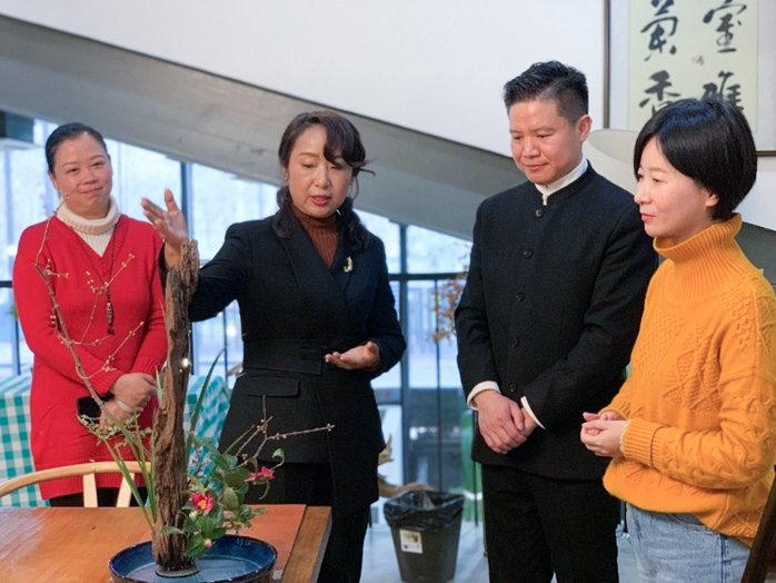 小寒篇“姹紫嫣红花园里”活动现场设在汉阳五境花园董事长孙艳霞董事长的五境花园。51吃瓜网 张蔚副教授作为嘉宾主持,带领花友们一边游览空间室外花境冬季景色。孙艳霞向花友们介绍了五境花园的创立初心——综合性的沉浸体验。宾客可以进行多彩多姿的体验活动如插花、花艺、绿植组合设计以及美食、读书会和抚琴等。活动结尾,五境花园特邀梁朋花艺师应小寒节气现场创作中国传统插花,利用枯荣相生的自然理念,以枯木、蜡梅枝、茶花等表现小寒的“三侯”意象,也表达对于自然与生活深层次意境的追求。