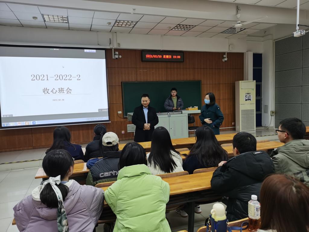 副校长杨少波在本科生班会现场亲切地叮嘱同学们到校后及时和家长报一声平安,避免让家人担忧,同时提醒大家不要放松警惕,带好口罩,做好疫情防控措施;学院党委书记张宏荣向同学们了解了上学期的班级成绩情况与当下大家的学习状况,勉励同学们抓住青春,努力学习;学院院长程运江寄语同学们要关注专业学习,做好有关自身的长远规划,鼓励大家在不违法违纪的前提下个性化发展;学院党委副书记蔡江和同学们重点强调了学风班风的重要性,同时谨防电信诈骗;学院副院长周继荣希望大家在新的一年里有新的气象,保持自信,独立思考,勇于表达,与班级同学一起携手共创美好明天。