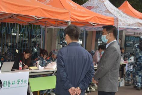 5月9日下午,学院党委书记张宏荣、院长程运江等老师到西运动场军训场地,了解训练进展,看望承训教官、教导员和参训学生。