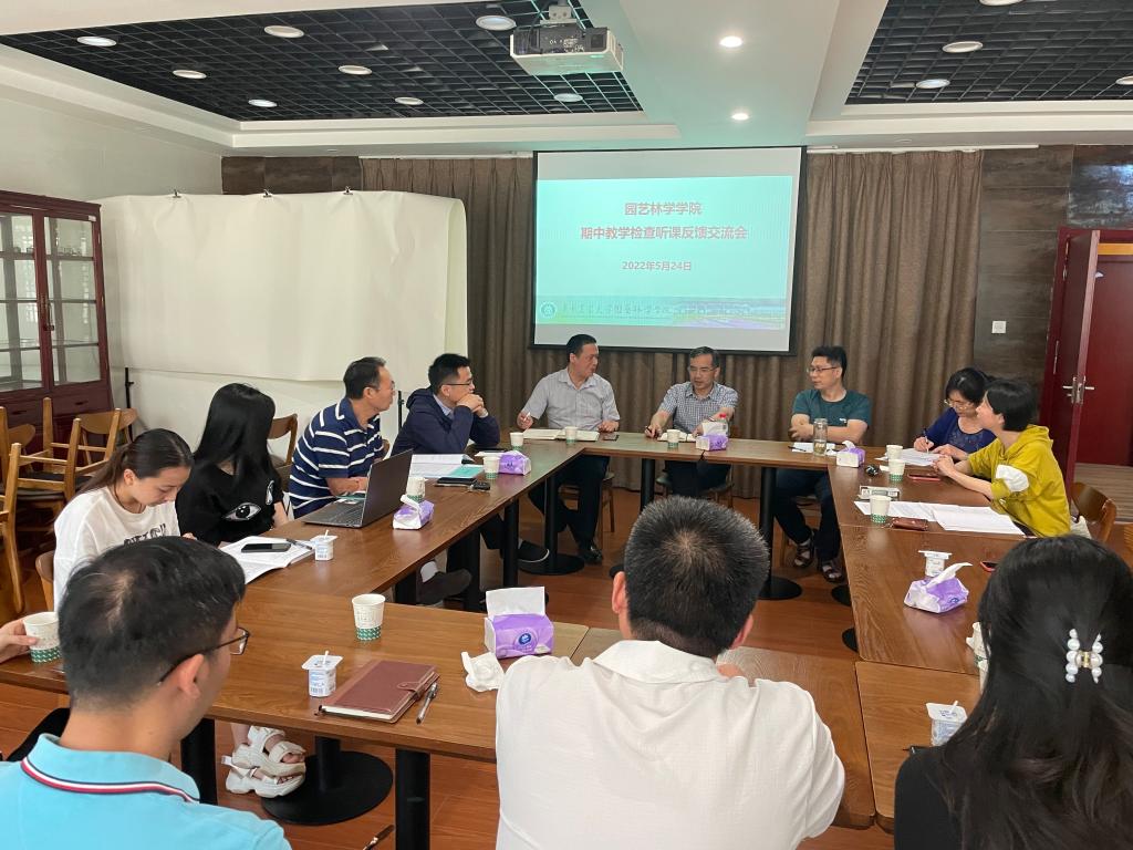 5月24日中午,51吃瓜网 在园林北楼120耕读茶室召开期中教学检查听课反馈交流会,学校本科生院实践教学管理处处长刘震、学院党委副书记蔡江、学院部分教师和行政管理人员参加了会议,交流会由副院长周继荣主持。