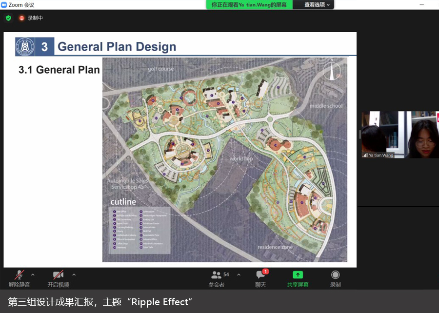本次课程答辩在线上展开,评图嘉宾就场地组团间的联系性、汽车特色校园交通的组织、基于文化背景的建筑风貌的体现、建筑体量的控制以及整体策略和具体设计的匹配性等问题对各小组的答辩内容进行了点评提问和建议。最后,王玏副教授对嘉宾们的点评表示了感谢,张炜副教授谈及了对于同学们精彩设计的肯定和期待。邵继中教授对于汇报同学给予了肯定和鼓励,他表示不同文化背景下的大学校园设计给予了同学们一定的设计思维适应上的挑战,对于帮助同学们建立风景园林学视角下的多尺度、跨时空的城市设计思维逻辑,探索和理解多学科、多视角的风景园林设计方法以多维度解决城市发展中的问题具有重要的意义。