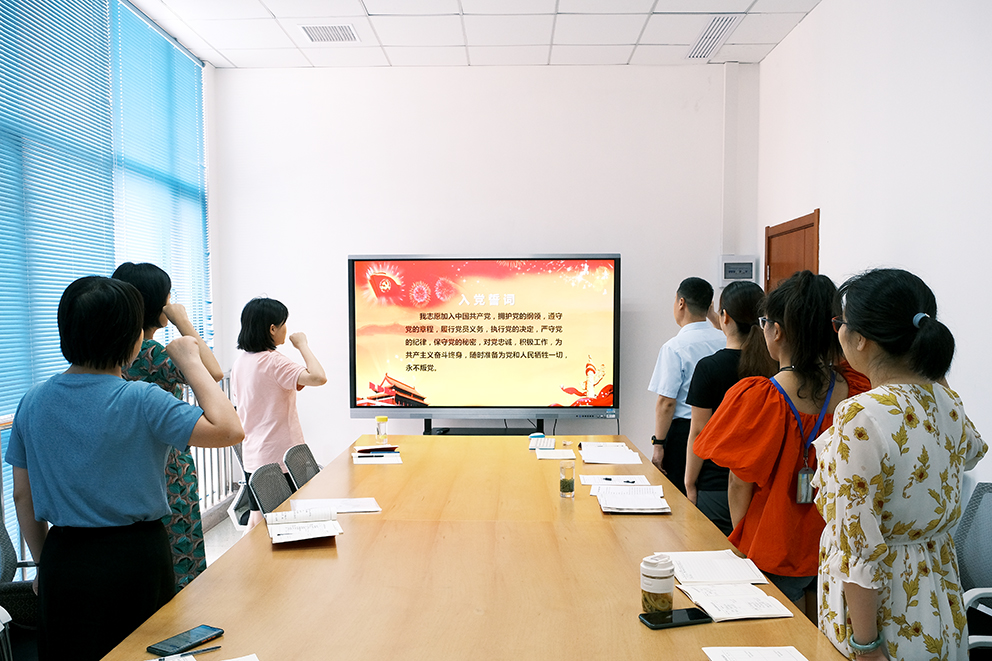 活动第一个环节首先进行重温入党誓词集体宣誓活动,参会全体党员在党徽前进行了庄严宣誓。通过重温入党誓词,大家回顾了入党初心,更加坚定了入党信念,增强了责任意识、使命意识、服务意识,不忘初心,牢记使命。