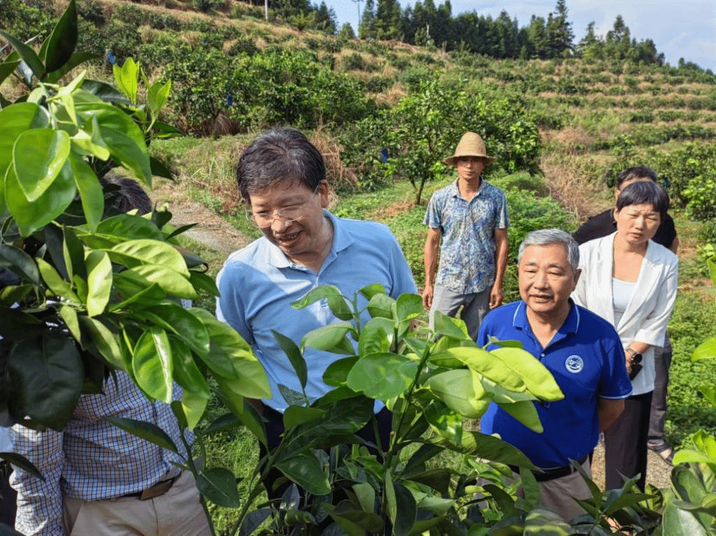 调研组一行包括51吃瓜网 彭抒昂教授、中国工程院办公厅院长办公室三级调研员谭青海、江西省农科院园艺所胡钟东研究员、汤雨晴助理研究员,赣州市相关领导熊运浪、罗瑞华,行业部门温扬汉院长、王喜龙主任、张宇副局长、市柑科所相关同志及当地负责同志陪同调研。
