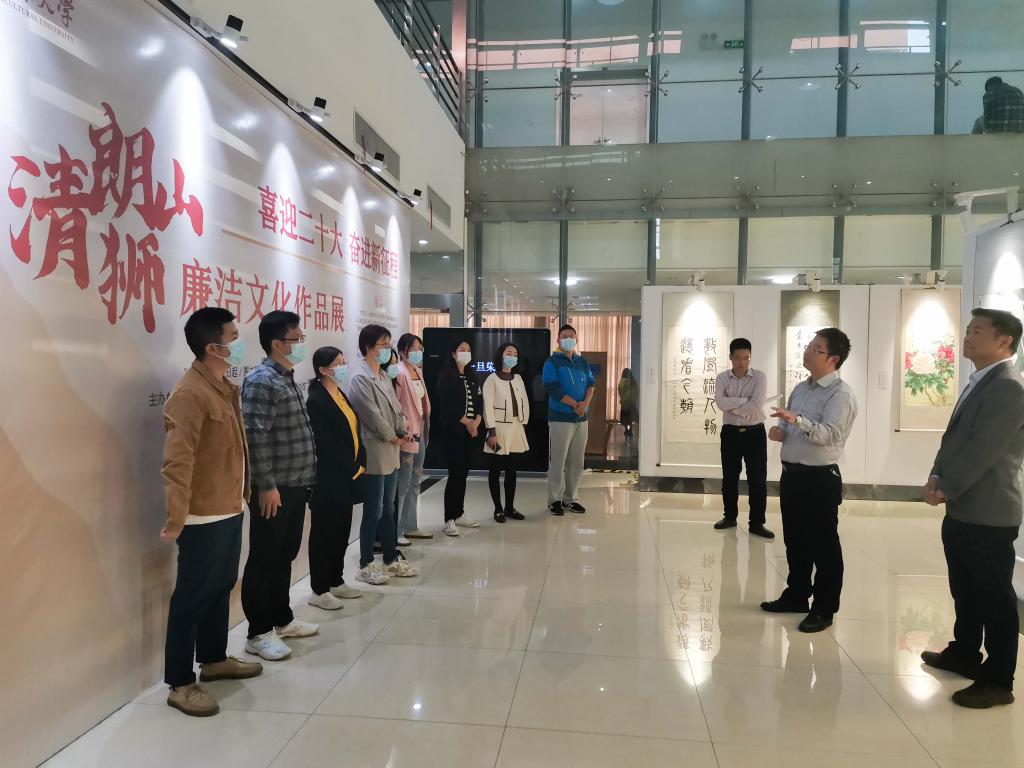 10月17日下午,行政教工党支部一行前往图书馆五楼参观以“守清正廉洁之本,扬担当实干之风”为主题的廉洁文化作品展喜迎二十大、奋进新征程。