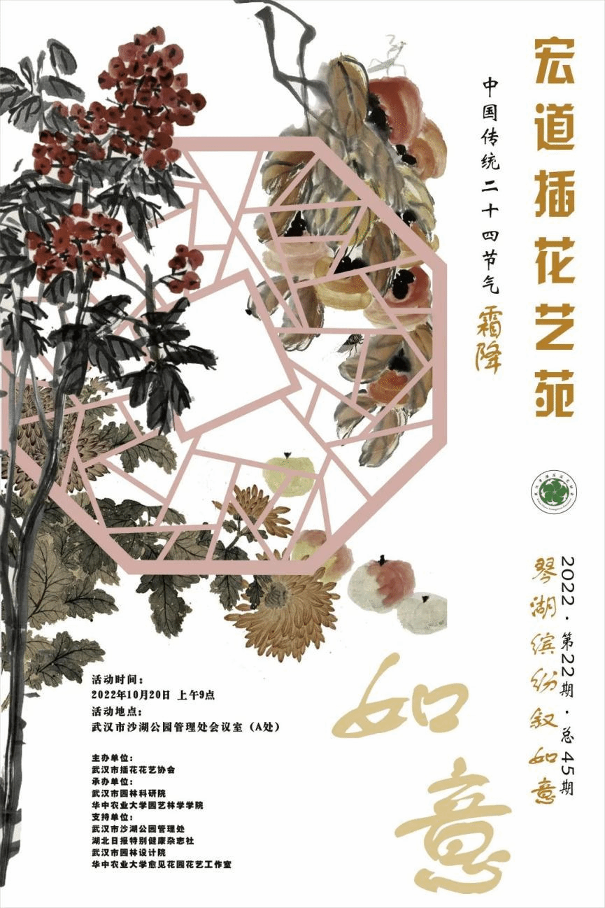 20日上午,由武汉市插花花艺协会主办的“宏道插花艺苑”第45期“琴湖缤纷叙如意”二十四节气系列活动,在武汉市沙湖公园管理处会议室(A处)举办。