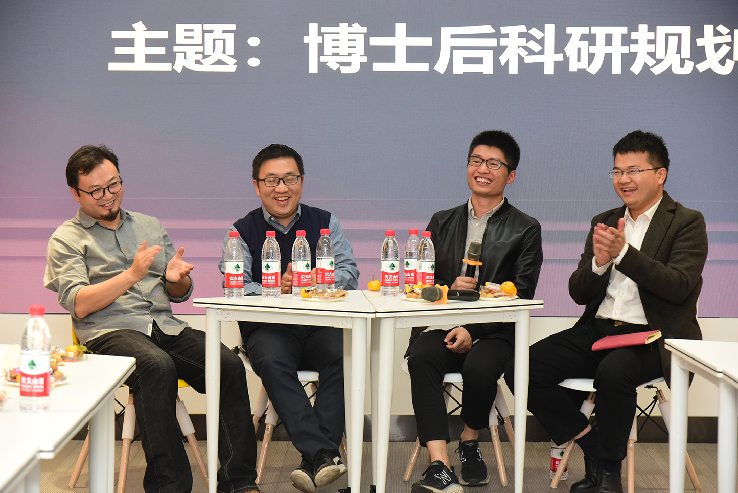 成立仪式后,举行了学术分享交流活动,朱峰研究员主持了会议。张飞、林宗成、孙苗三位老师结合国外留学经历,分享了自己在科研、工作以及生活等方面的思考和感悟。“博士后是研究生涯中相对自由的阶段,也是创造力最强的时期”,谈及博士后经历,张飞不禁感慨道。针对在场博士后提到的如何面对科研压力的问题,林宗成说到,博士后研究期间,要做好长期“抗战”的准备,沉下心来专注自己的科研,只有脚踏实地,才能水到渠成。孙苗认为,要建立自己的科研体系,在继承自己原有研究的基础上,不断挖掘思考,寻找新的研究点。