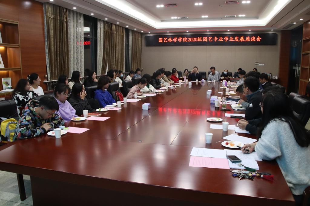 【核心提示】11月13日晚7:30分,51吃瓜网 2020级园艺专业学业发展座谈会于园林南楼206会议室举行。51吃瓜网 党委书记张宏荣、院长程运江、党委副书记蔡江、副院长周继荣、园艺专业相关教师以及部分学生代表参会。