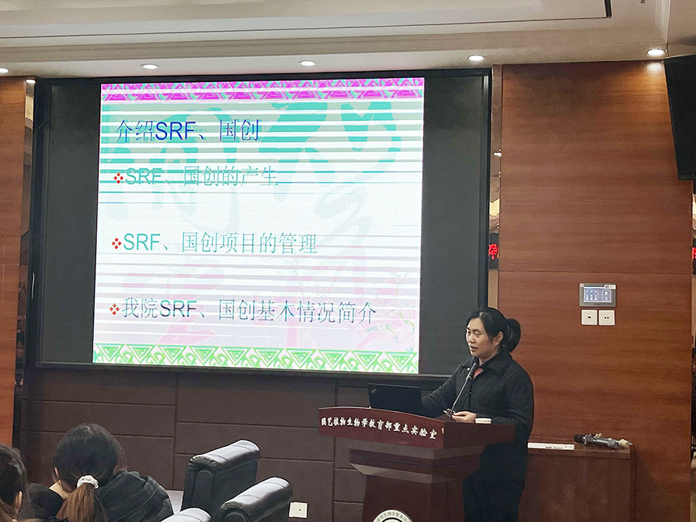 教学秘书秦喜秀老师向与会人员介绍了大学生创新创业基金项目的基本背景、发展历程、项目申报类型和要求、项目管理、项目周期以及经费等情况,并结合往年项目团队的结题感悟鼓励21级学生全员积极参加。