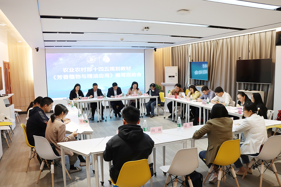4月29日下午,《芳香植物与精油应用》教材编写启动会在园林北楼虚拟仿真实验室召开。启动会由学院副院长周继荣主持,邀请了来自中国农业大学、南京农业大学、中国热带农业科学院香料饮料研究所、云南农业科学院、浙江大学以及广州名花香料有限公司、汉萃(上海)生物科技有限公司等科研院所和香料企业的专家参会。会议讨论了教材的主体内容、编写大纲、编写规范、人员分工、时间安排等进行了深入而详细的讨论。