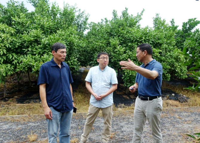 陈增建和宋庆鑫2位教授参观柑橘细胞工程育种试验园