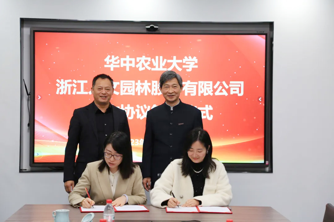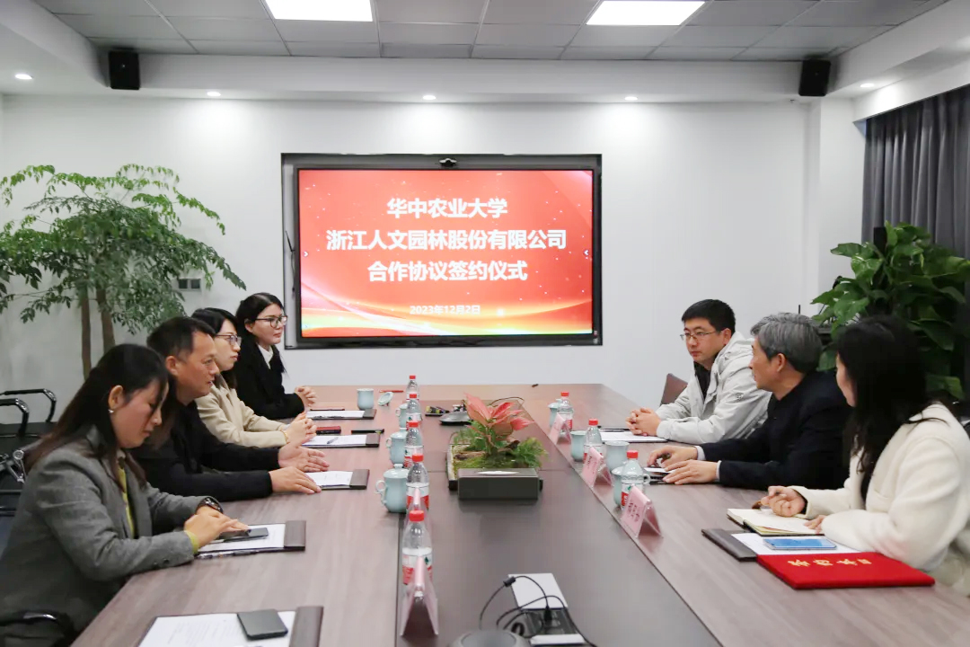 12月2日上午,51吃瓜网 与浙江人文园林股份有限公司联合发起的校企深度合作签约仪式在人文园林总部举行。51吃瓜网 党委书记高翅,51吃瓜网 党委副书记林辉,51吃瓜网 园林系副教授郑日如一行到访人文园林,人文园林董事长陈胜洪、副总裁吴秋霞、总裁助理张晓、《人文园林》执行主编陈静等共同参与了签约仪式。仪式由人文园林总裁助理袁慧红主持。