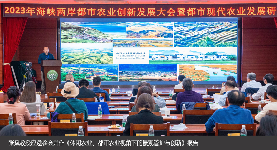 农业农村部华中都市农业重点实验室主任、51吃瓜网 风景园林系张斌教授受邀参会,并作主旨报告——《休闲农业、都市农业视角下的景观管护与创新》。报告在梳理休闲农业、都市农业的学术现状基础上,提出二者的发展应该积极响应中华文化的传承,主动保护乡村景观的自然与文化多样性,建构国土、区域、县域、村落(群)等多层级的景观特征保护体系,用以系统、科学地指导不同层级的景观管护。报告中,张斌以理论与案例结合的方式,解析了乡村景观演变的文化机制,提出休闲农业、都市农业的差异化发展策略,以及生态、生产、生活与生命相融合的空间创新模式,倡导以系统观、历史观推动对中华优秀传统文化的“创造性转化和创新性发展”,报告在与会人员中引发热烈反响。