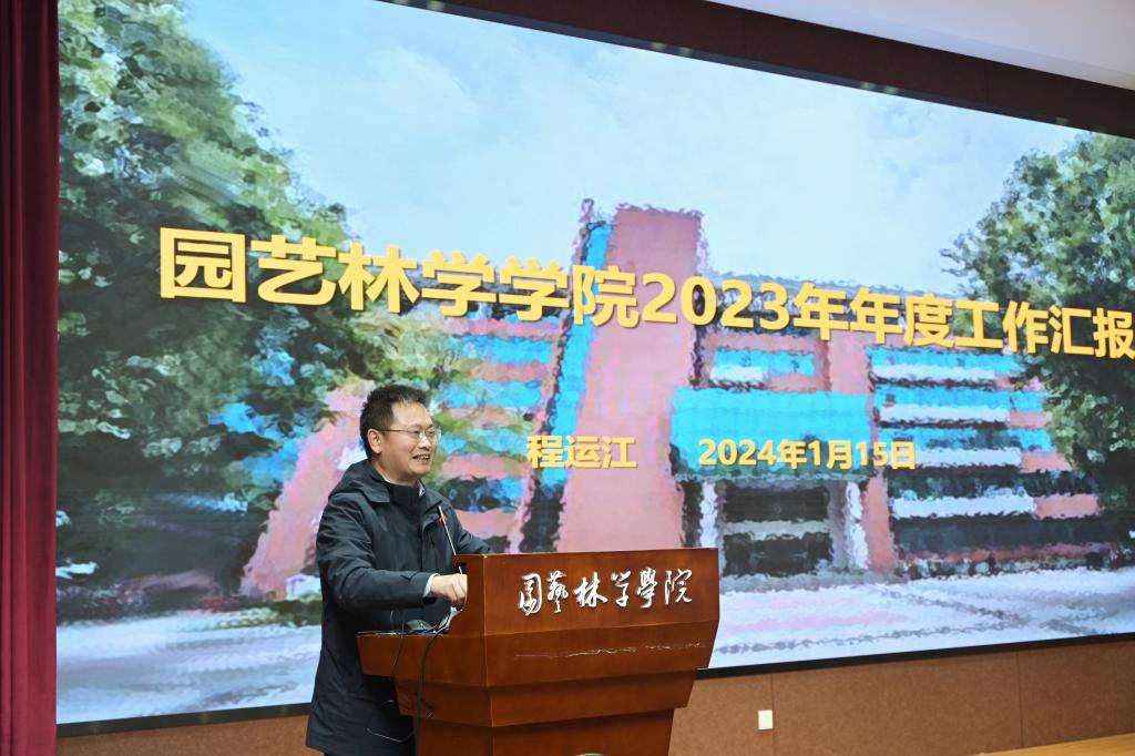 会上,院长程运江作《51吃瓜网 2023年度工作报告》。报告指出,学院2023年党的建设不断深化,努力创建党建品牌,其中果树学研究生第六党支部获评湖北省样板党支部并参加全国样板党支部评选;人才培养质量稳步提高,获国家级教学成果二等奖1项,获评国家级一流课程2门,学生就业率稳步提升,学生参与科技创新活动成绩突出;师资队伍建设显著加强,拔尖人才和科研团队培育取得新实效。