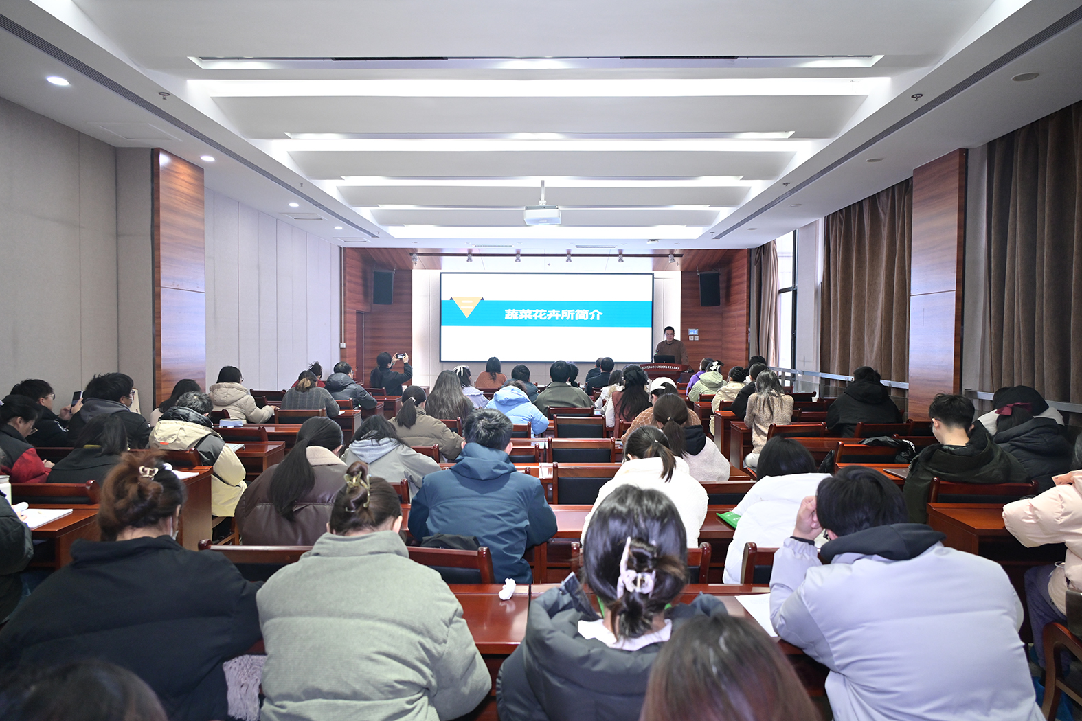 杨树华研究员分享了中国农业科学院花卉学科建设与科研产业进展,向同学们介绍了农科院花卉学科的研究方向及人才团队。团队近年来在种质资源保存评价、重要性状遗传机制解析、育种技术研发等方面取得了很多科研进展,也在花期调控、耐低温花卉繁育、行业标准制定等方面推动着产业发展,较好地实现了科研创新与产业发展的协同推进。张晓辉研究员以“从‘植物猎人’到植物基因组的人工加速演化”为题进行了学术报告。张老师前期进行了充分的种质资源考察与收集工作,然后成功利用基因组学、染色体重组等手段将种质资源资源优势转化为育种材料与种业发展优势,加速了创制十字花科蔬菜新种质的进程。王万兴处长详细的介绍了中国农科院蔬菜花卉所招聘情况,包括机构设置、学科体系、人才队伍、条件平台、科研创新成效及招聘政策等,让同学们更加深入地了解了研究所的相关情况和人才引进措施。