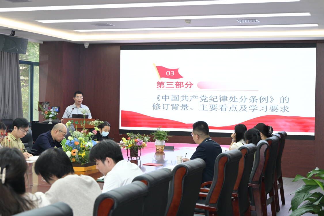 4月25日下午,园林院开展“党风廉政建设”专题学习。院党委书记龙健飞以“党的纪律建设重要论述的三维特质”为题讲授专题党课。