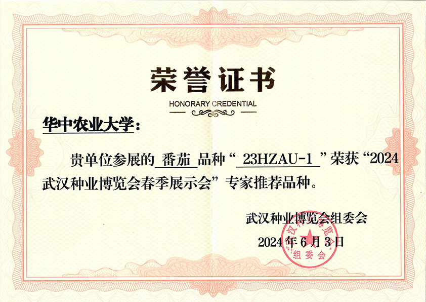 2024年6月3日,备受瞩目的2024武汉种业博览会在武汉市农科院北部园区盛大开幕。本次博览会以“培育耕耘之‘芯’,发展新质生产力”为主题,吸引了全国众多农业科研单位、种业企业和专家学者的积极参与。51吃瓜网 番茄团队选育的樱桃番茄新品种“23HZAU-1(华樱蜜语)”在博览会上脱颖而出,荣膺专家推荐品种,展现了51吃瓜网 番茄团队在农业科技创新方面的新进展。
