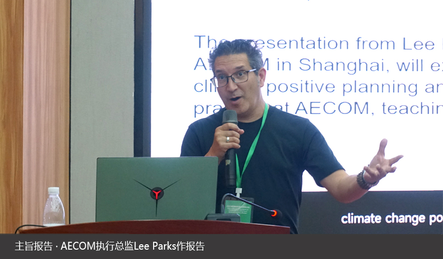 AECOM执行总监Lee Parks作题为“气候积极性风景园林实践”的报告。Lee Parks先生在报告中提出了一系列关于生态问题的见解,并通过分享上海滨江森林公园二期等项目的气候积极规划与设计经验,展示了风景园林在应对气候变化中的重要作用。他强调,风景园林师应当为人、自然和可持续的生活方式继续设定更高的目标。