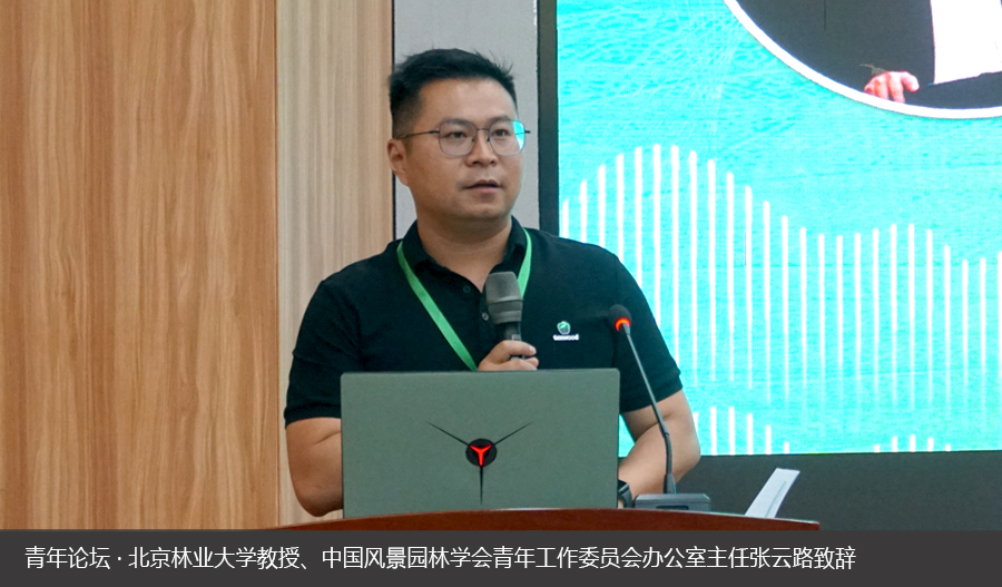 论坛伊始,北京林业大学教授、中国风景园林学会青年工作委员会办公室主任张云路进行了致辞。张云路在致辞中指出新质生产力的三个特征是先进、创新、优质,而这三个特征也正是中国风景园林青年人的真实写照。面对行业变革,他引用古言“来而不可失者,时也;蹈而不可失者,机也”,希望青年风景园林师们团结起来,以星星之火可以燎原的气势,使行业不断前行。