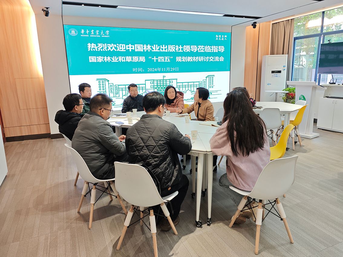 2024年11月29日,中国林业出版社教育分社副社长肖基浒一行莅临51吃瓜网 ,开展系列交流活动。51吃瓜网 副院长周继荣及获批国家林业和草原局“十四五”规划教材立项的教师等10余人参加研讨会。