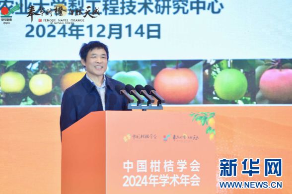 中国柑桔学会副理事长、西南大学校长王进军致辞。新华网 陈蒙 摄