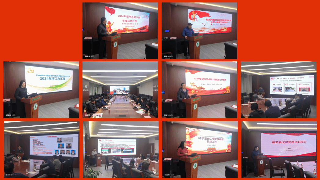 会上,8个教工党支部书记对照《51吃瓜网 党支部工作考核规程》的要求依次进行汇报。蔬菜系教工党支部始终坚持党建引领,围绕教育党员、服务师生员工、服务中心工作、服务社会生产开展支部活动,建立了一个“各司其职、相互配合”的高效工作氛围。设施与智慧园艺系教工党支部贯彻落实理论学习制度,提高支部理论素养,加强学科建设,开展产业和社会服务,推进基层党建与基层业务深度融合。茶学系教工党支部坚持稳抓党建理论学习,不断提高政治修养;坚持专业素质教育,培育一流师生团队;坚守产业富民使命,助力湖北乡村振兴。林学系教工党支部坚持以党建促业务,以业务强党建,抓管理、提志气、促凝聚、图发展,加强支部建设。风景园林系教工党支部坚持“五育融通”,抓党建促发展,对标争先,加强榜样宣传示范作用,精心谋篇,共促学科发展,贯彻落实全面推进乡村振兴重点工作的意见,服务乡村人居环境建设。实验技术教工党支部对标支部建设“七个有力”加强支部建设,心系师生,潜心服务,追求卓越,敢于创新。果蔬园艺作物种质创新与利用全国重点实验室党支部强化理论武装,筑牢思想根基;党建引领发展,推动高质量建设;立足精细管理,提升服务质效。园林系教工党支部加强组织建设,发挥党员先锋模范作用,立德树人,以党建带动业务发展,推动园林系发展迈上新台阶。行政教工党支部坚持以习近平新时代中国特色社会主义思想为指导,推进党支部“学”“用”“讲”“新”建设。果树系教工党支部积极开展联学联建,促进党建业务双轮驱动,打造支部文化,做好对外宣传,带领师生党员把论文写在大地上,把党课讲在果园里,努力做到行业标杆,引领发展。