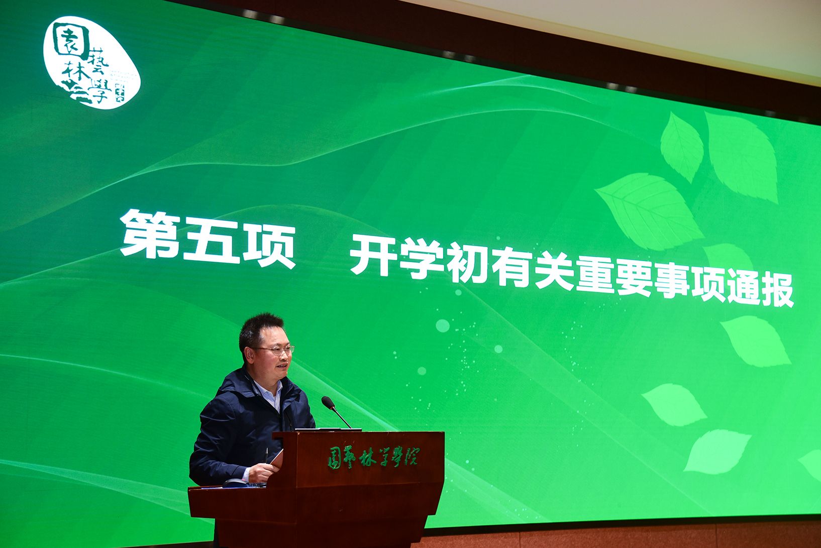 2月19日下午,学院2025年第3次教职工大会于园林北楼228报告厅举行。会议由学院党委书记龙健飞主持。